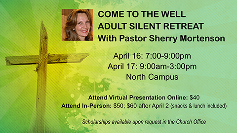 During both life’s peaks and valleys, come to a safe place for spiritual growth. Come to the well and be refreshed with the guidance and teaching of Pastor Sherry Mortenson. Co-sponsored by Valley Christian Counseling.